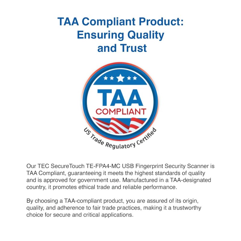 TEC SecureTouch TE-FPA4-MC USB Fingerprint Reader - Windows Hello, FIDO U2F, Compatible with Windows 10 & 11, 360° Quick Match, Secure File Encryption