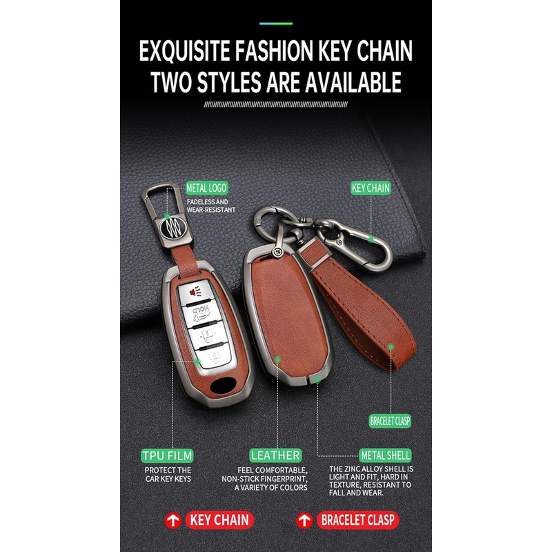 🚗【Material】:This key bag fit for Infiniti Q50 is made of Zinc alloy(metal frame)and PU leather with transparent front cover,the weight of the key cover is within a reasonable range. Provide double protection for your key fob. The button position does not affect the sensitivity when the button is pressed.