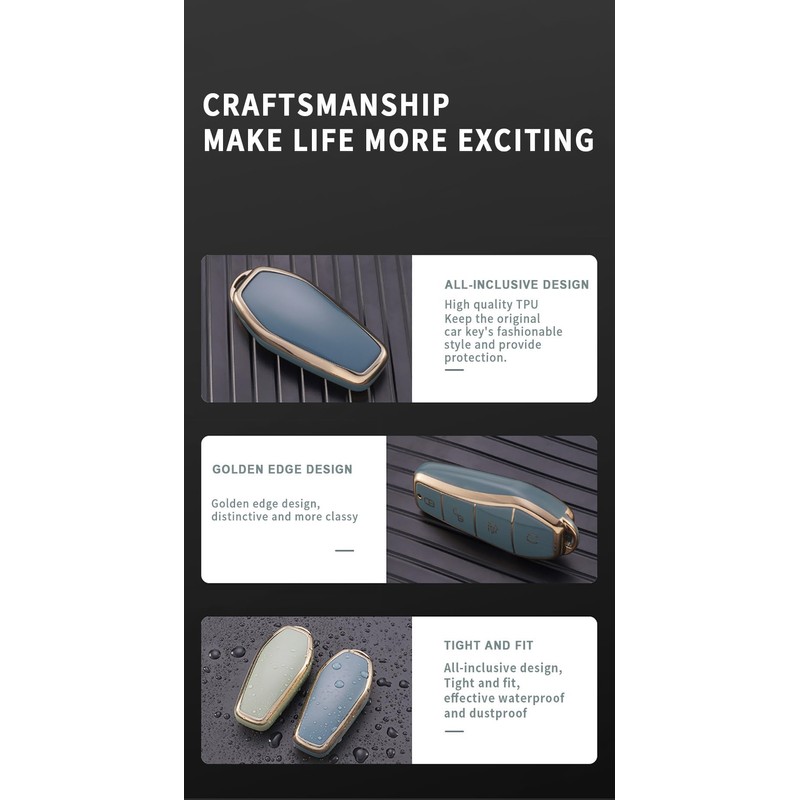 - Premium-MaterialUnser Schlssel Hlle besteht aus weicher und dnner TPU, TPU ist ein neuartiges umweltfreundliches Material mit hoher Flexibilit?t und Verschlei?festigkeit.Der Rand des Schlsselgeh?uses weist ein modisches und sch?nes Goldranddesign auf.
