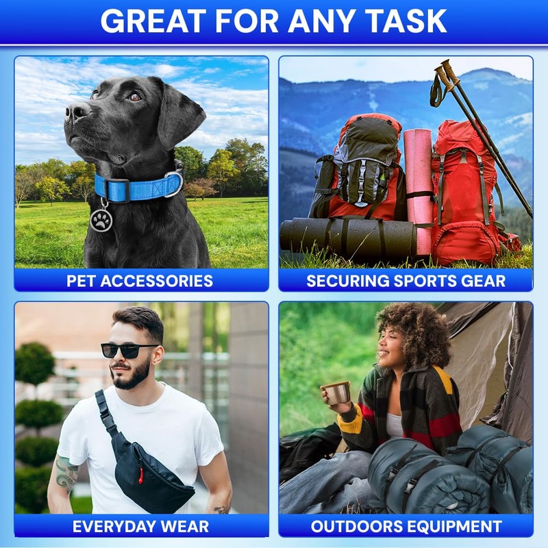 - 𝗛𝗜𝗚𝗛 𝗗𝗨𝗥𝗔𝗕𝗜𝗟𝗜𝗧𝗬: Buckles set made from POM — a heavy-duty plastic known for its exceptional strength, rigidity, smooth surface. Perfect for use with nylon webbing, POM ensures secure adjustments and connections in outdoor gear, luggage, pet accessories, and DIY projects. Its low friction and load stability make it suitable for demanding environments.