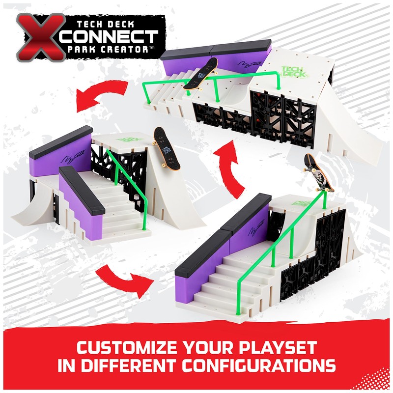 • BECOME A PRO: Combine other X-Connect playsets for the ultimate Tech Deck skatepark. Shred your exclusive finger board (each sold separately) with grip tape, bushings and more just like the pros do.