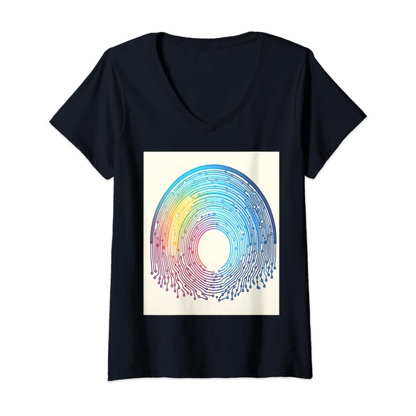 Tech Wireframe Rainbow Art V-Neck T-Shirt