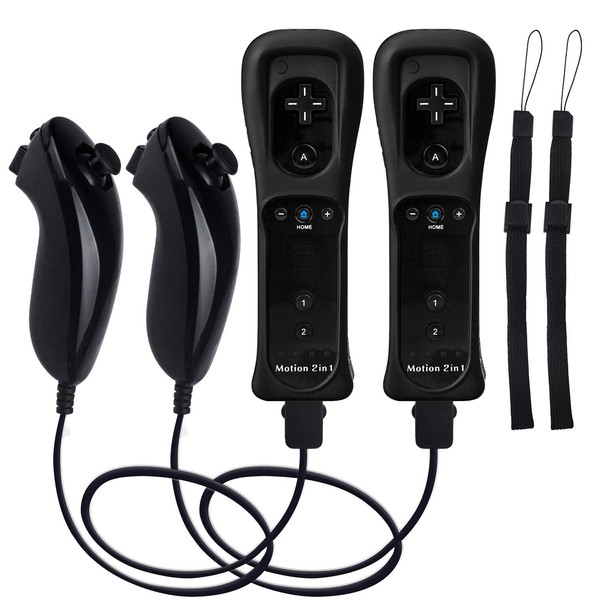 Motion Plus Wii Controllers 2Packs with Nunchucks, Wii Remote Controllers Compatible for wii and Wii U with Built in Motion Plus