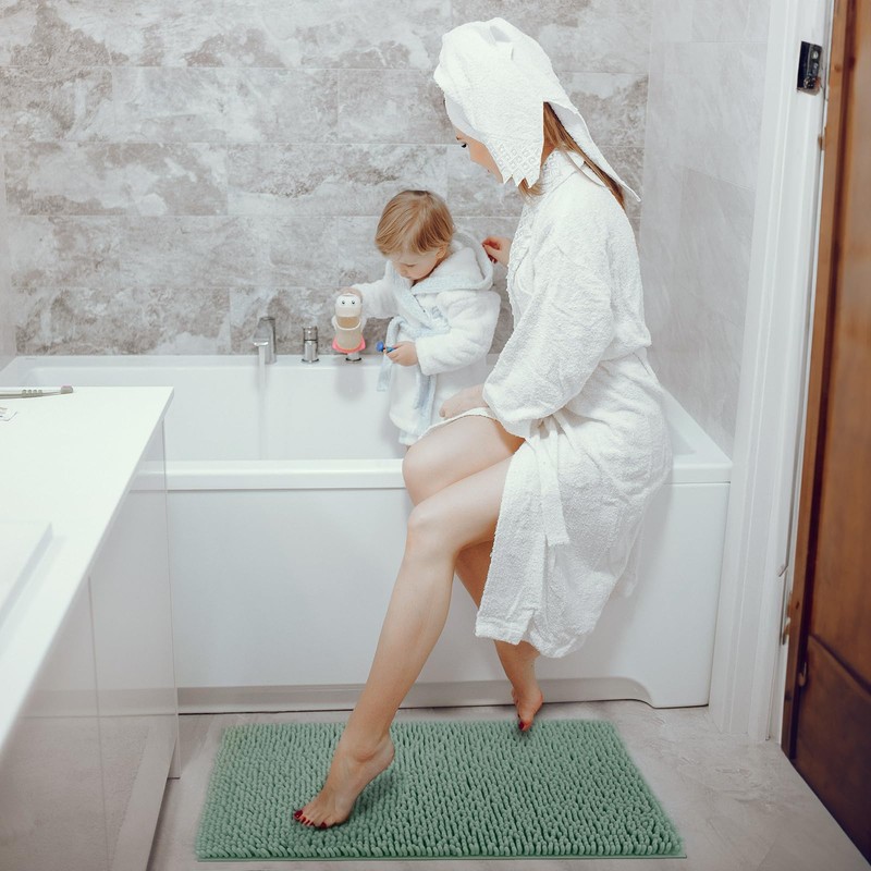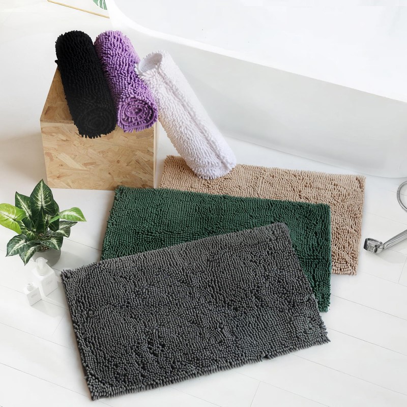 - Enjoy Softness & Comfort: Hate touching the cold floor directly after bathing? Our soft dense chenille bath mats for bathroom floor, measuring 1.16 inches high, could shield feet from the cold floor and soothe sole tiredness. Besides, with warm and cozy features, our chenille rugs will be the favorites of your dogs or cats