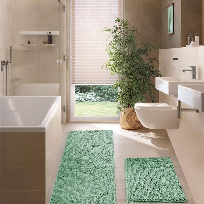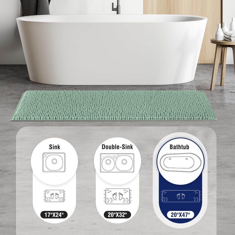 TECHMILLY Soft Fluffy Chenille Long Bathroom Rugs Runners, Non Slip Absorbent Bath Mats for Bathroom, Washable and Quick Dry, Seafoam Green, 20" x 47"