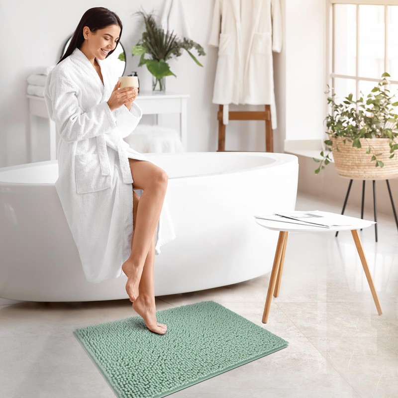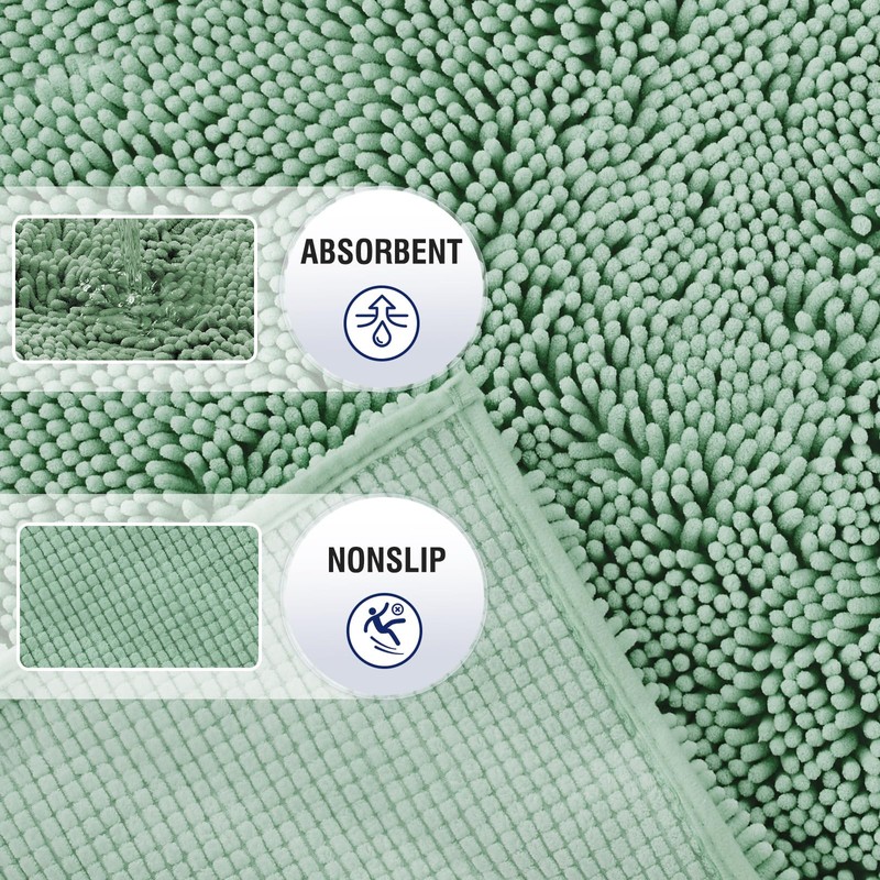 - Ultra Absorbent: When you are stepping out of the bathtub, shower, or standing at the sink, our 1600 GSM absorbent bath mat with thousands of thick chenille shags could absorb water quickly and much to keep your feet and floor dry.The resulting quick-dry feature also makes rugs an excellent choice for bathrooms or other spaces with high humidity