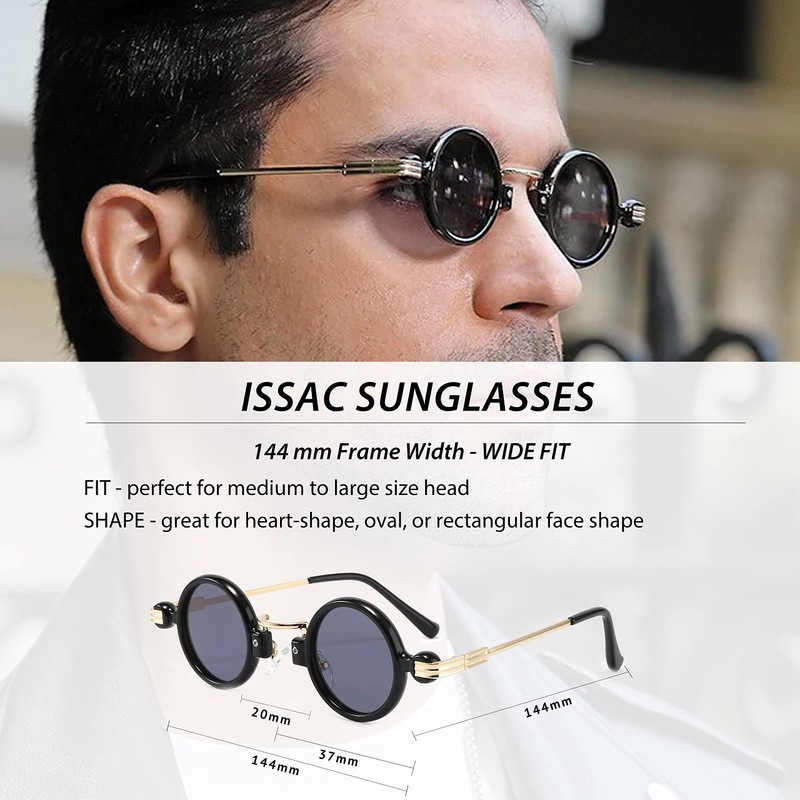 - SMALL ROUND RETRO SUNGLASSES: Take the spotlight without being overbearing. Isaac can take your style elevated without so much effort. Its stylish, small, round shape frame gives a nod to vintage-style sunglasses perfect for oval, square or triangular face shapes.