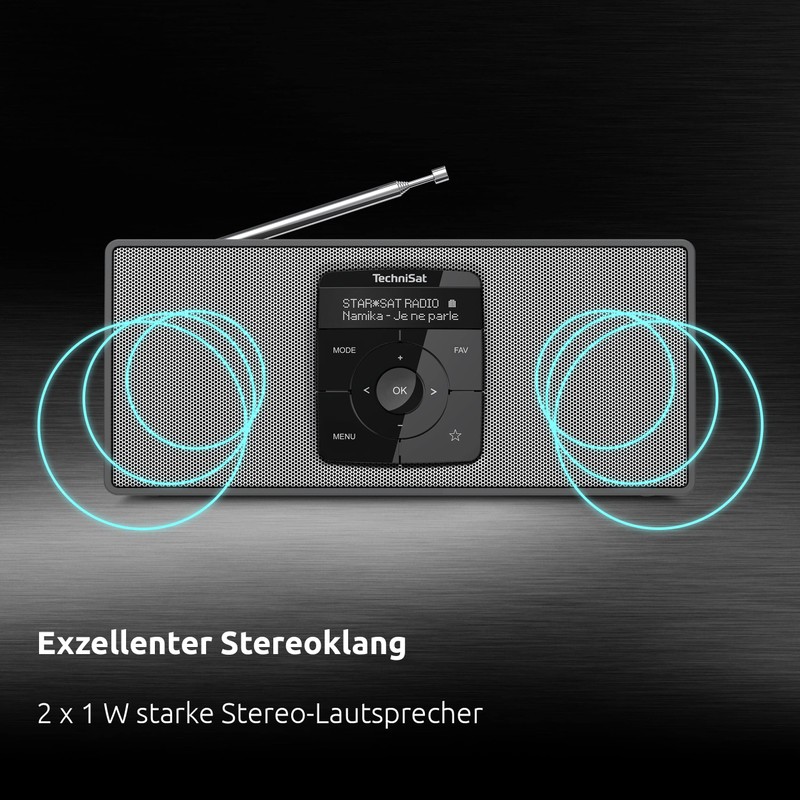• Box contents: 1 x TechniSat DIGITRADIO 2 S, black-silver, battery pack, power supply, instruction manual, weight: 490 g, dimensions (W x H x D): 24.5 x 10.9 x 4.7 cm