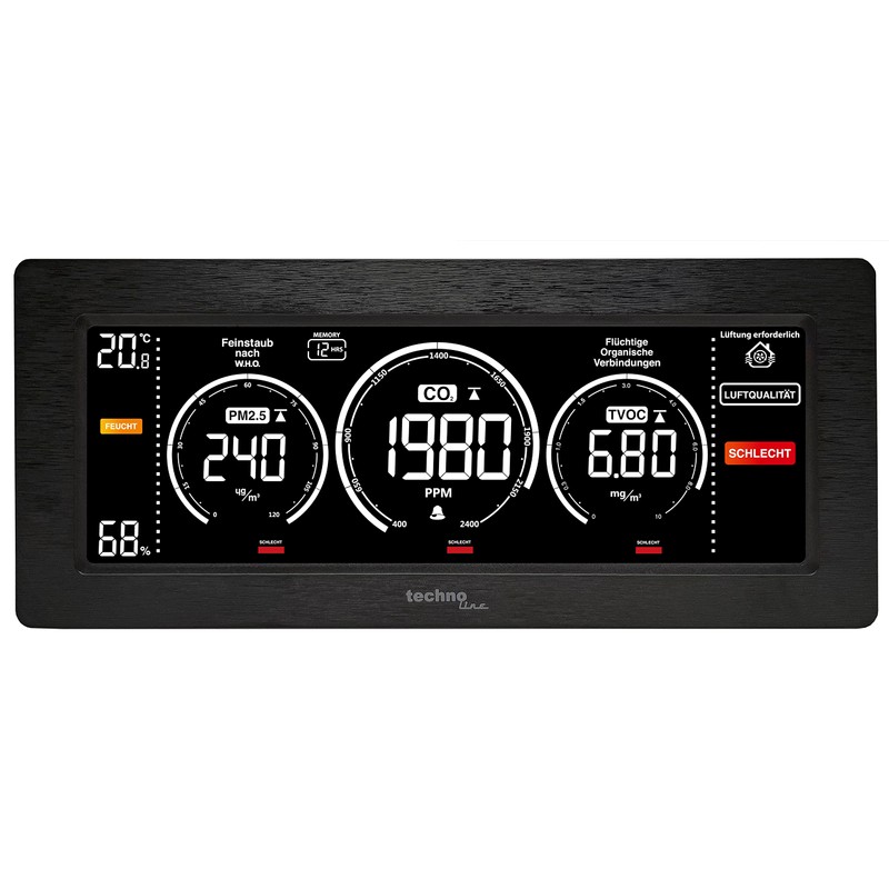 Technoline Air Quality Monitor, Coloured Display Co2 and TVOC Concentration, Display of Fine Dust Meter, for Your Indoor Air Quality