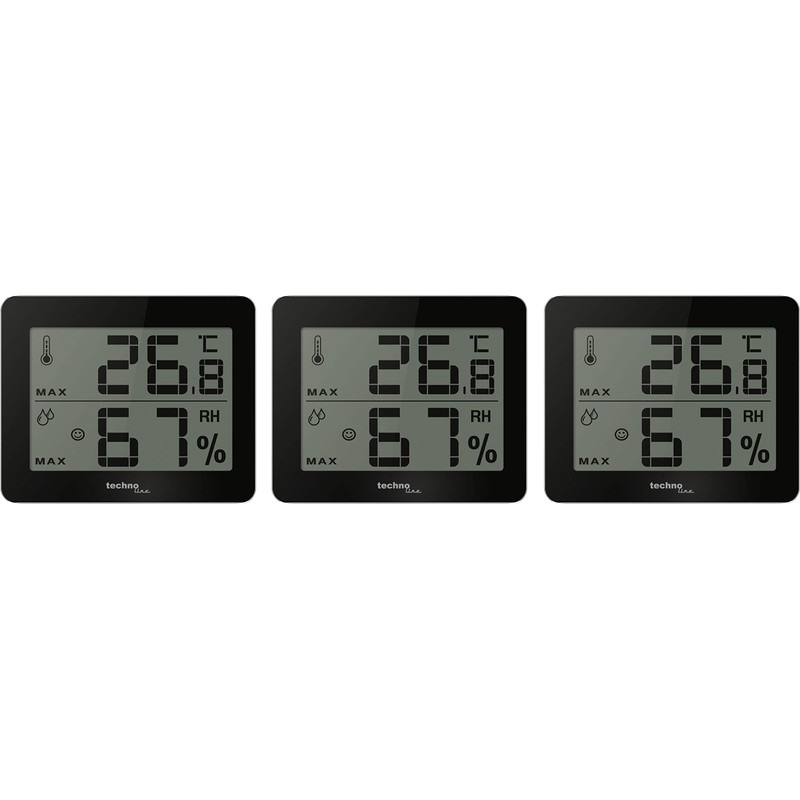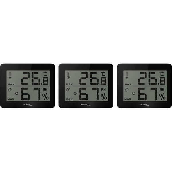 - With the practical set of 3, you can monitor 3 rooms at the same time and react in time in case of excessive humidity formation