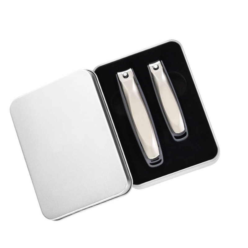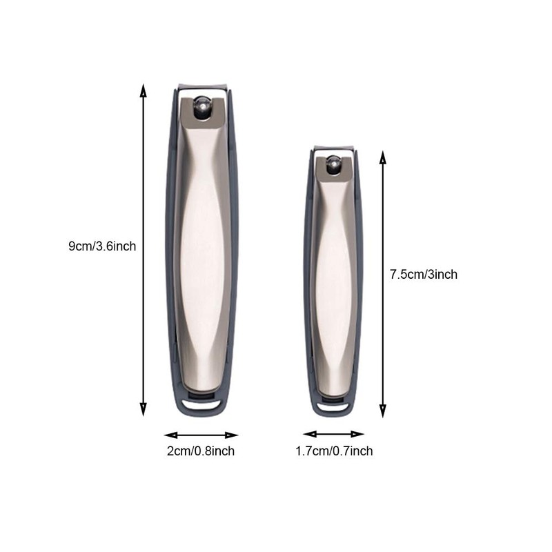 TecHong 2Pcs No Splash Nail Clippers Set - Stainless Steel Fingernail/Thick Toenail Cutter Nail Trimmer with Nail Auto Storage Box for Men & Women, Sharp Cutting Edges - Professional & Home Use