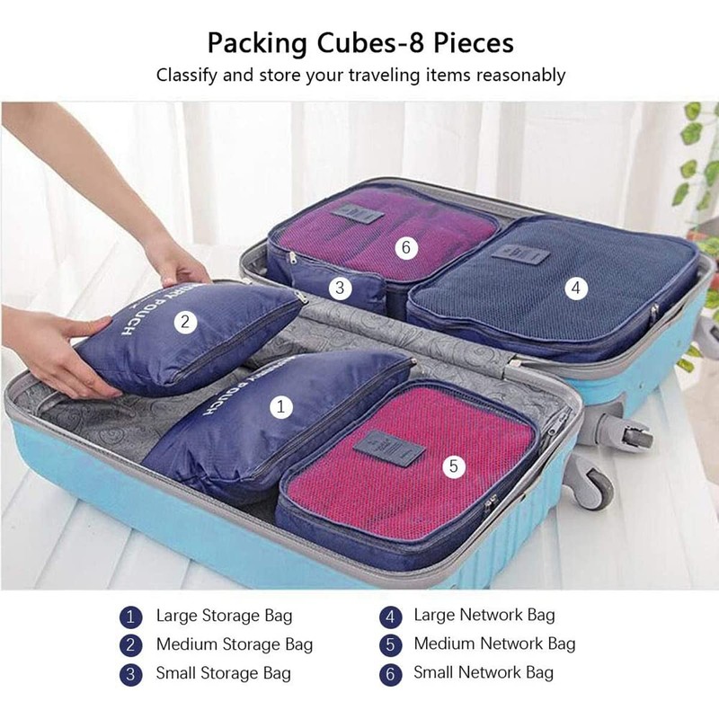 Techson 8pcs Travel Organiser Packing Bags, Clothes Tidy Suitcase Pouch Organizer Set, Portable Luggage Shoe Storage Cube Pouch (Blue)