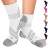 - Información importante: mide tanto el tamaño de tu zapato como la circunferencia del tobillo. Consulta la tabla de tallas. 4 tallas S, M, L, XL para hombres y mujeres. Calcetines de un cuarto de longitud: 80% nailon duradero y 20% elastano. 1 par