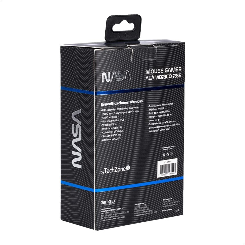 TECHZONE Mouse Gamer RGB NASA Color Negro Alámbrico USB con DPI's Ajustable, Compatible con Windows y Mac