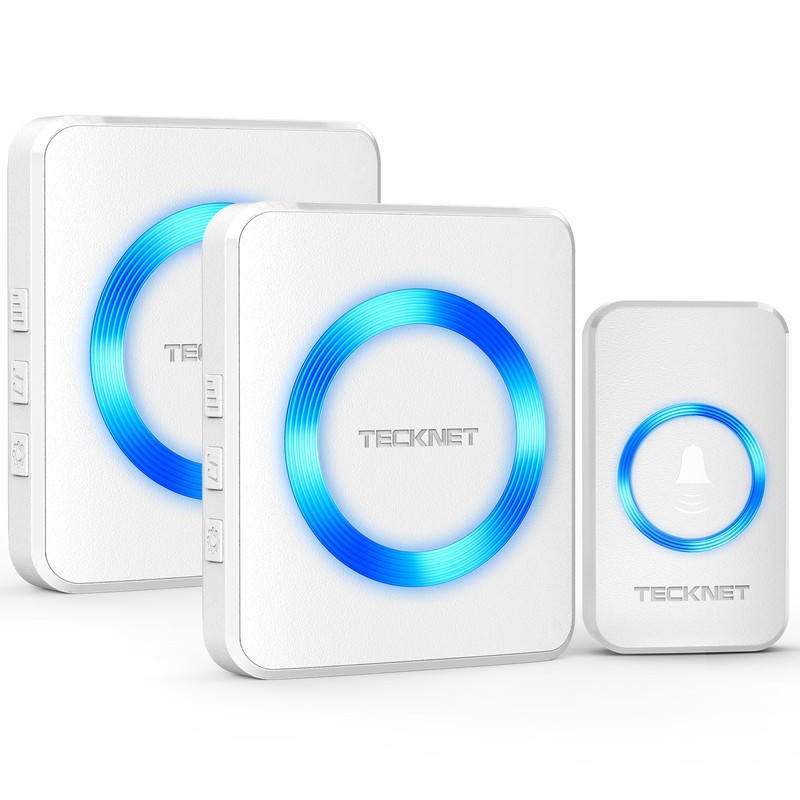 TECKNET TECKNET Funkklingel, Kabellose Trklingel Funk Set 400m Reichweite, IP65 Aussen Wasserdicht Haustr Klingel mit 2 Plug-In-Empf?nger und 1 Sender, Ring doorbell und Klingelknopf Mit LED-Blitz