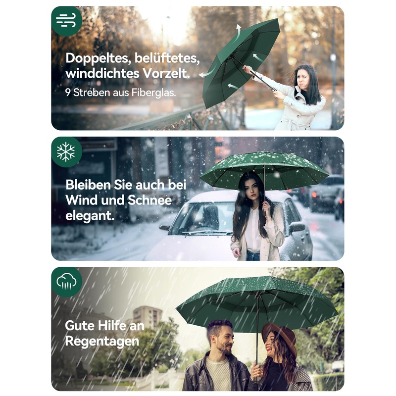 TECKNET Umbrella, automatic folding umbrella, pocket umbrella, stormproof, easy to open and close, excellent stability. Suitable for rainy and snowy days, Green