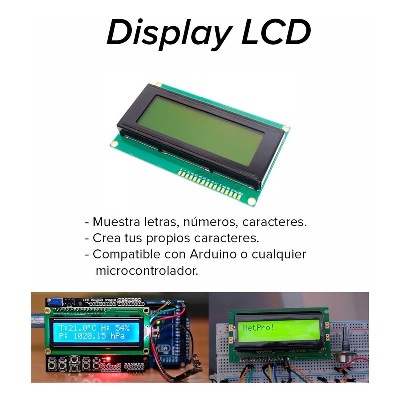 - LCD alfanumérico de 4 filas por 20 columnas con Backlight Led Azul.