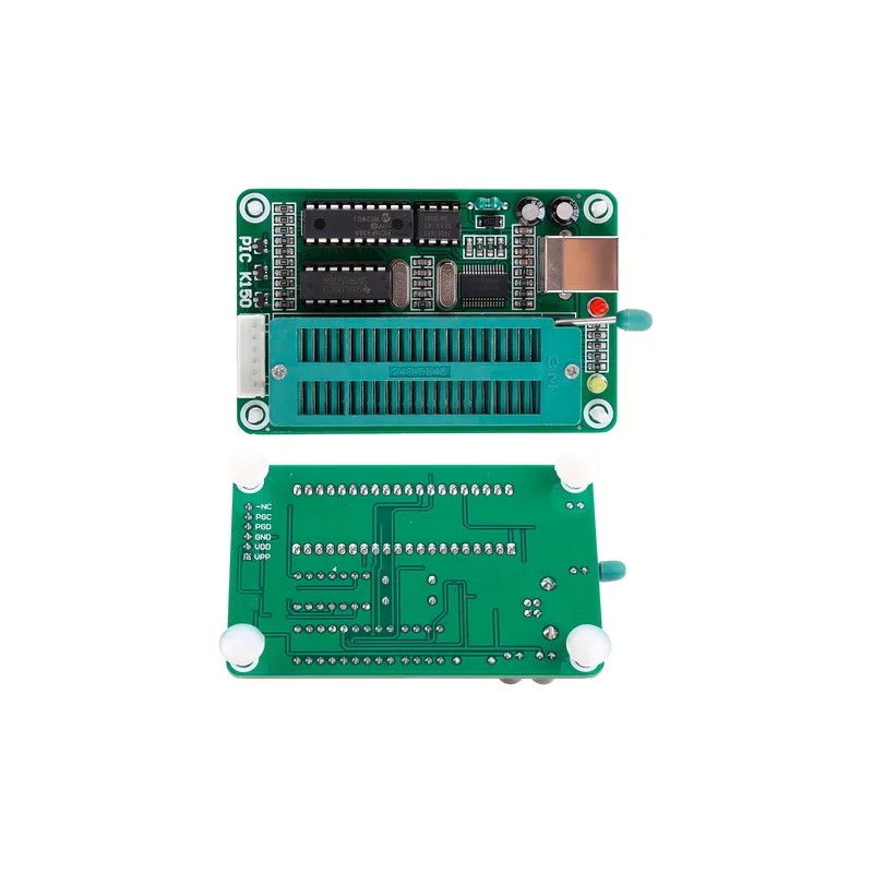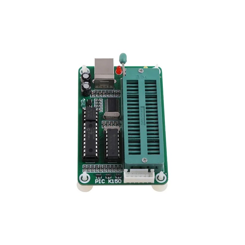El K150 es un programador de bajo costo y alto rendimiento para programar los microcontroladores PIC más populares. Permite la lectura, escritura y encriptación de los programas como la mayoría de programadores que hay en el mercado. No requiere de programación externa ya que se alimenta directamente vía USB.