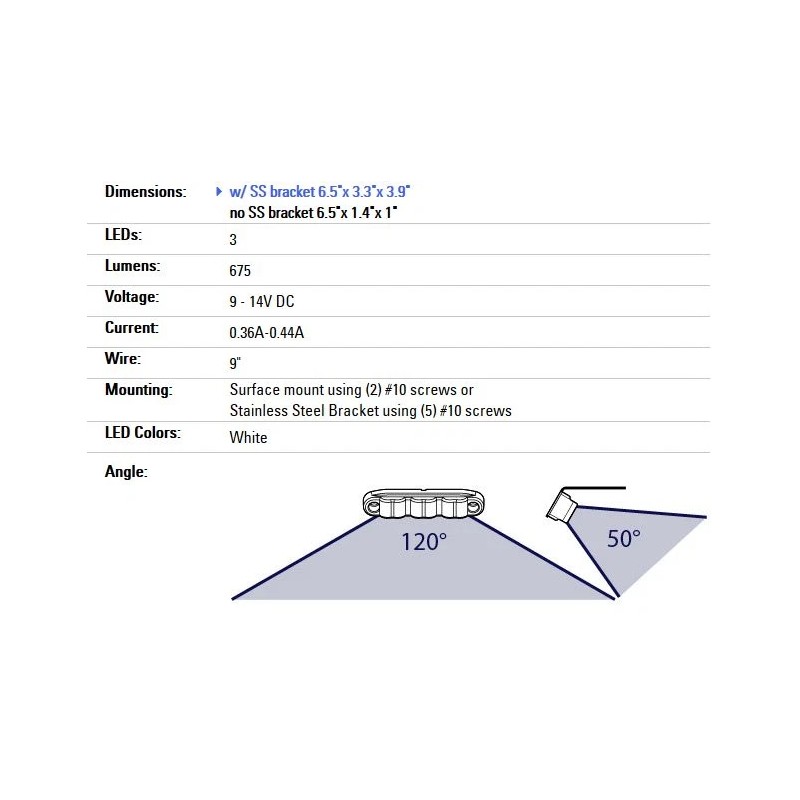 - Extra-wide area of illumination (120º x 50º) covers many applications: Task lighting • Load lamp • Ground lighting • Panel lighting and more!