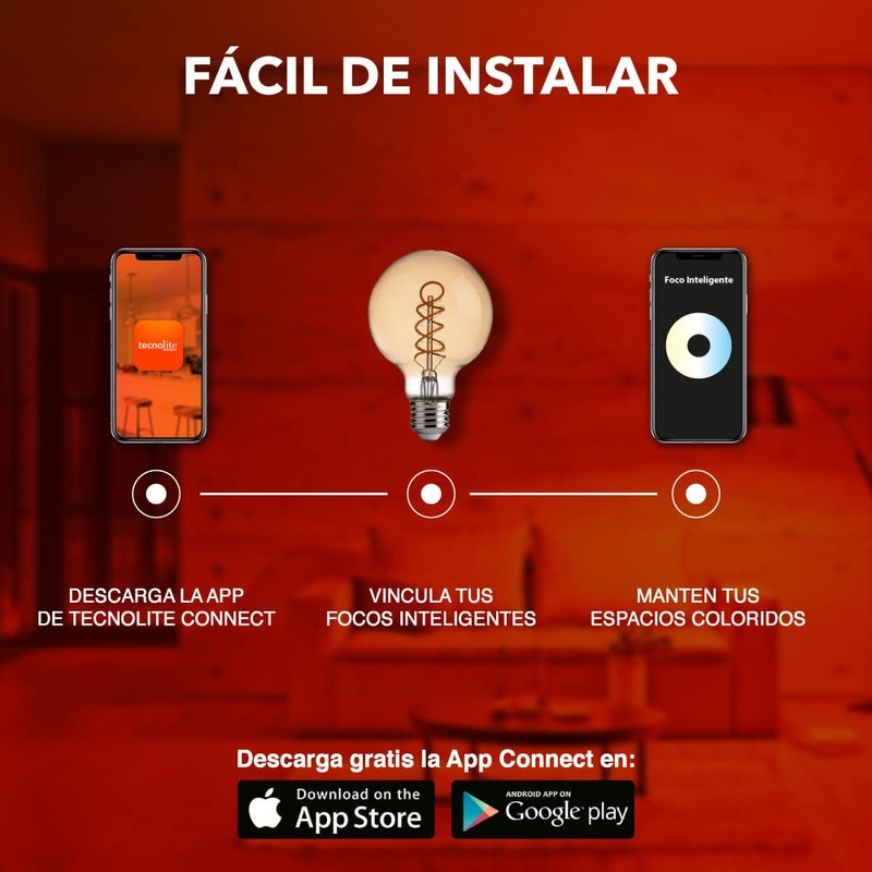 - 💡 DISEÑOS CLÁSICOS AHORA INTELIGENTES: Respetamos el diseño de antiguos focos con la integración de WiFi. Puedes atenuar o intensificar la luz, programar el encendido, además de elegir entre 64 mil tonos de blancos. Con las bombillas de Tecnolite Connect tendrás la facilidad de controlar todo desde tu dispositivo móvil y desde donde estés, ya sea si estás conectado a otra red Wi-Fi o datos móviles. Crea grupos y manipula toda tu iluminación al mismo tiempo. Asigna nombres de tus dispositivos y gestiona más usuarios en tu hogar o negocio.