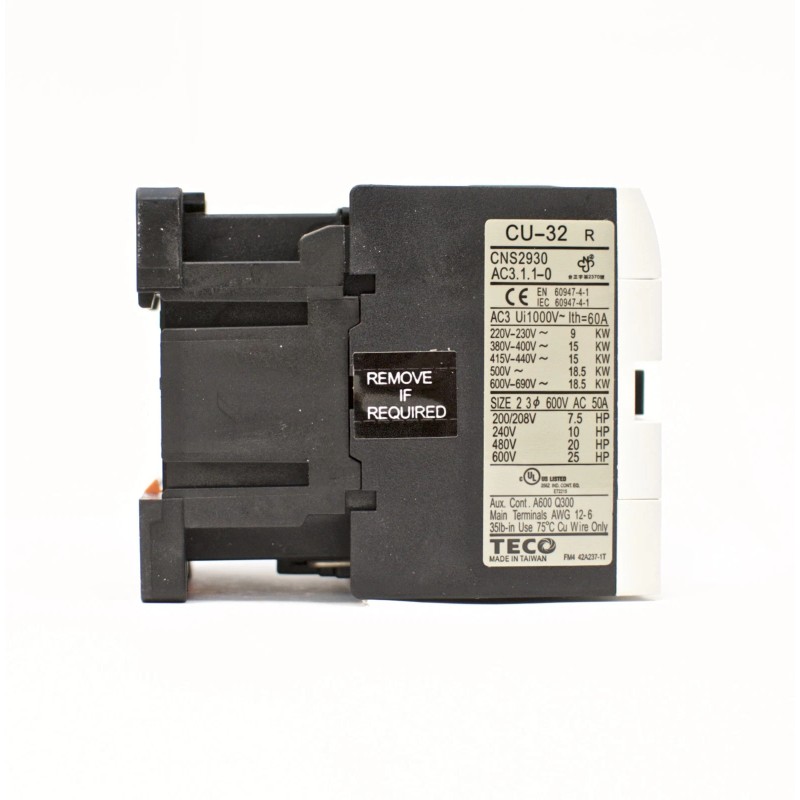 TECO CU-32R magnetic contactor, 50 Amp, 3 phase, 24v coil, 3A1a1b (NO and NC)