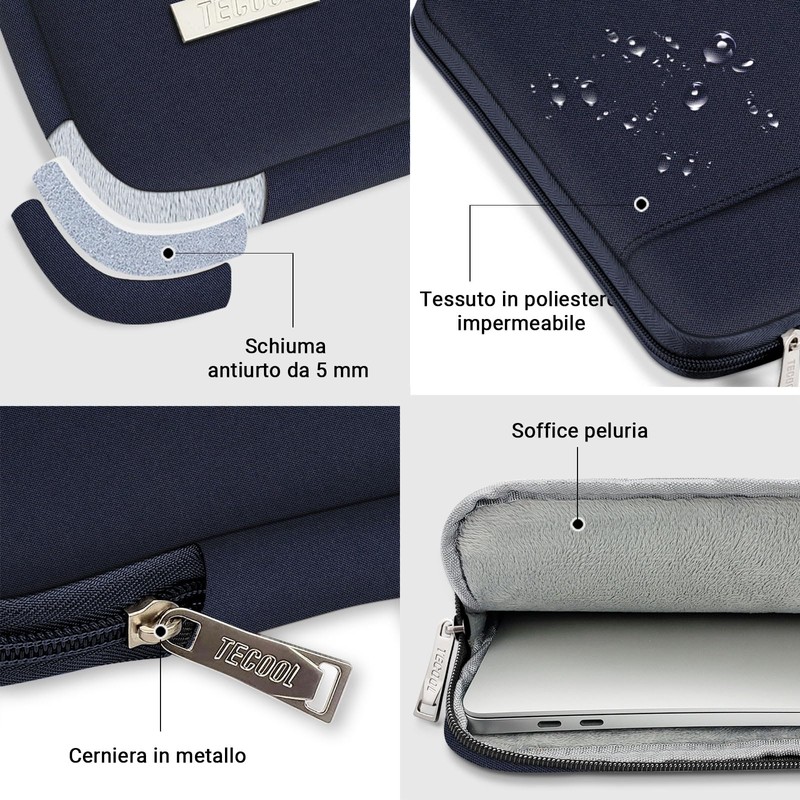 • [Superior Protecetion]: The out layer of the 14 inch laptop case is made of splash-resistant and abrasion proof polyester fabric, which is easy to clean and fast-drying. Soft comfortable lining provide good scratch protection. All sides and corners, except the zip side, are padded with shockproof foam in 5mm thickness.