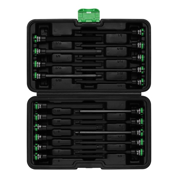 • ✅【Size Include】20PCS 3/8"Dr. Extra Long Allen Impact Hex Bit Socket Set: SAE:1/8", 5/32", 3/16", 7/32", 1/4", 9/32", 5/16", 3/8", 7/16"; Metric: 3mm, 4mm, 4.5mm, 5mm, 5.5mm, 6mm, 7mm, 8mm, 9mm, 10mm, 12mm