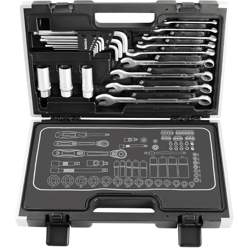 TECPO Inch Tool Nuts 92-Piece Socket Spanner Set 1/4 Inch 3/8 Inch + LED Workshop Lamp