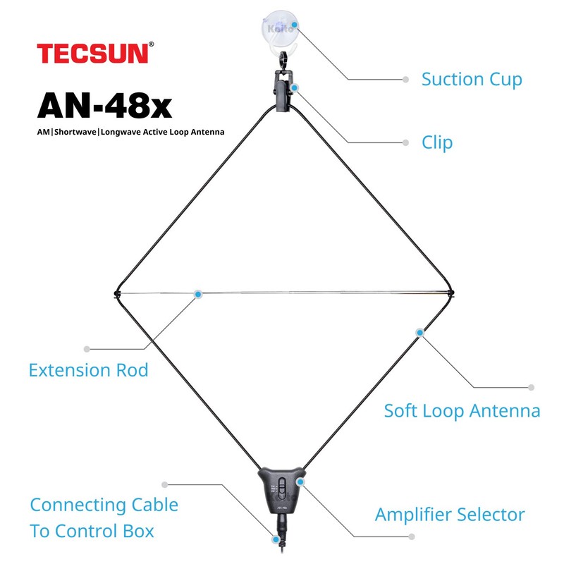 TECSUN AN-48X Interior Active Loop Am/LW/SW Antena de Radio