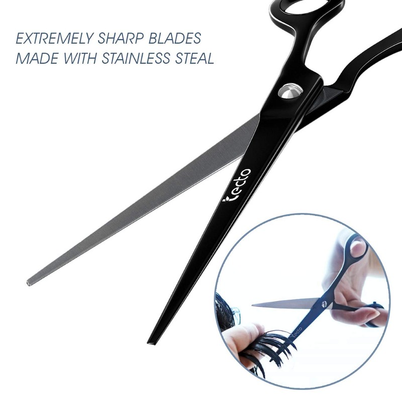 - Professional Shears: Tecto's black hair scissors professional have an ergonomic comfortable grip design that requires less thumb motion to open & close the trimming scissors for hair, Easy to use professional hair siccors that relaxes your wrist & elbow, allows for greater hair cutting leverage.