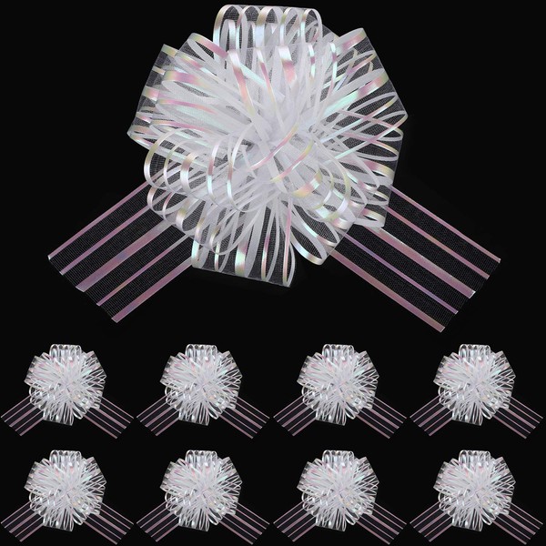 TecUnite 10 Pack Pull Bow, Organza White Large 6 Inches Pull String Bows for Wedding Christmas Easter Gifts
