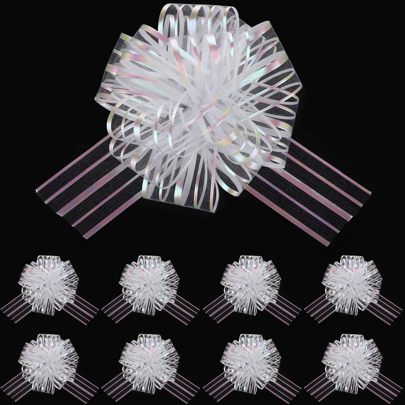 TecUnite 10 Pack Pull Bow, Organza White Large 6 Inches Pull String Bows for ...