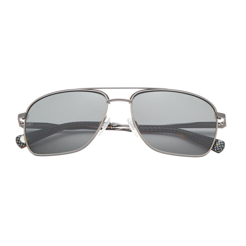 - Two-tone semi-matte dark gunmetal with cool grey accents and matte black temple tips. Exclusive Ted Baker print and ribbing detail take this frame to the next level.