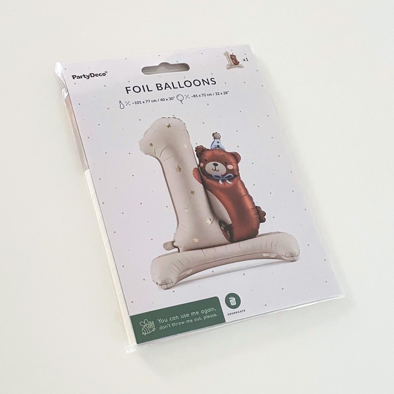 - Make your celebration unforgettable with our Foil Balloon Number 1 with Teddy Bear. Order now and let the festivities begin! We offer a full money back guarantee on this foil balloon party. So don't delay, order now!