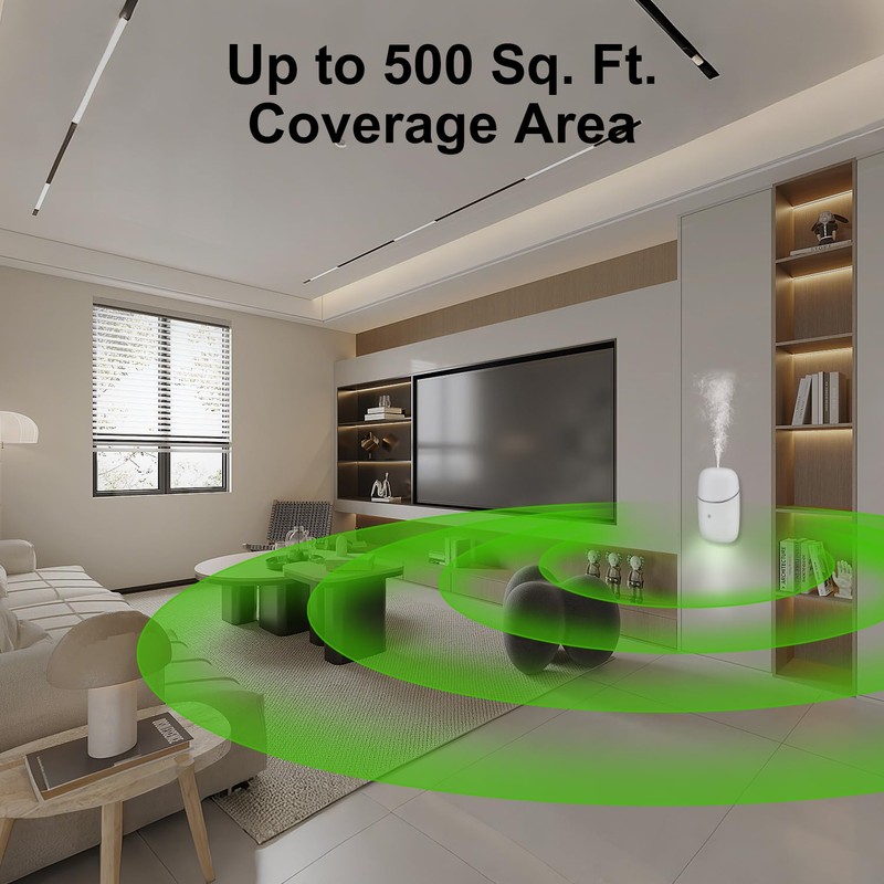 - Compact Egg DesignThis plug-in home diffuser features a sleek egg,built-in sensing light at the bottom, contracted but not simple,the size of your hand (5"H x 3"L x 2.5"W ),waterless essential oil diffuser up 500 sqft coverage fit for bathroom, living room,reading room, yoga, small office, and anywhere in your home.