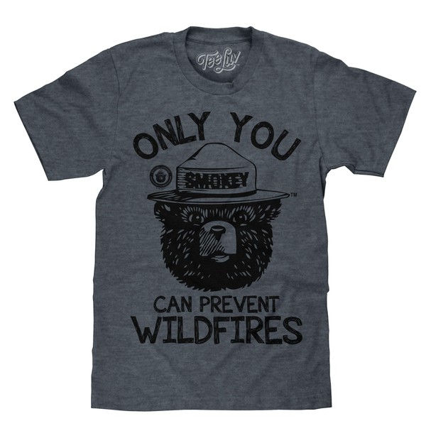 - Your New Favorite Smokey Bear T-Shirt: Show off your love for our national parks with the iconic Smokey Bear mascot and "Only You Can Prevent Wildfires" text - printed on the softest, Indigo-Black Heather tee we could find.