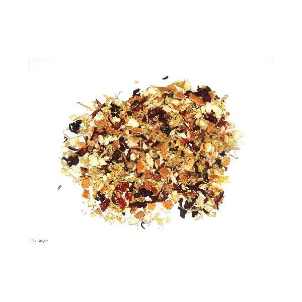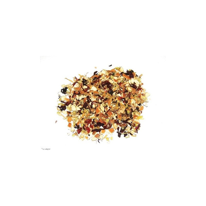 Ingredients: apple, hibiscus, rose hip, elderberry, orange peel, cat paw, marigold blossom, natural blood orange aroma.