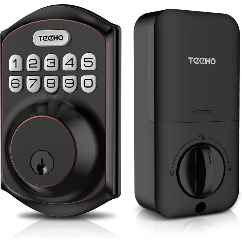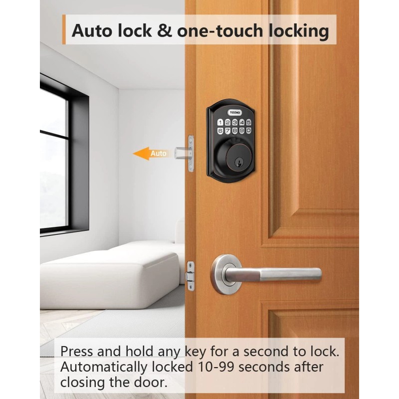 TEEHO Keyless Entry Door Lock with Keypad Smart Deadbolt Lock Front Door Lock 2 Keys - Oil-Rubbed Bronze