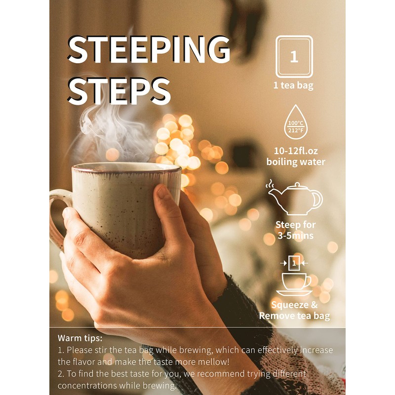 - [EASY TO BREW] - Add 1 burdock root tea bag to your favorite cup, Pour 300-400mL boiling water and steep it for 3-5 minutes, then remove the tea bags and enjoy it. You can enjoy it plain, or add honey, lemon according to your preferences.