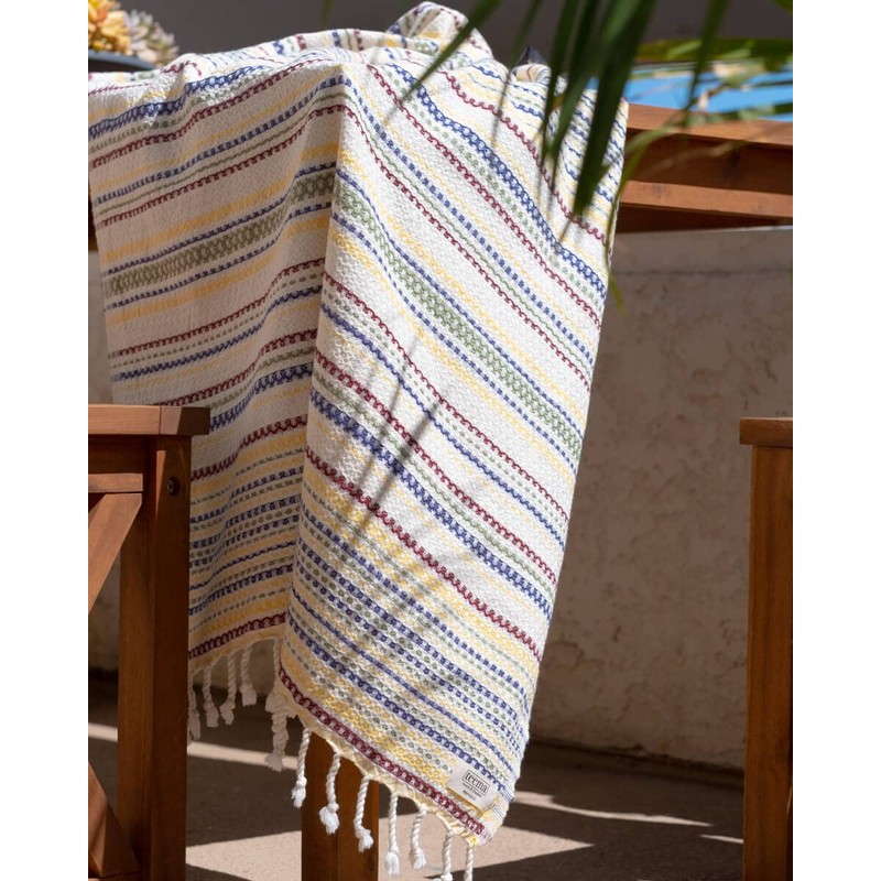 Teema Large Turkish Beach Towel - 100% Turkish Cotton - Sand Free - Fast Drying - Versatile and Multi-Use - The Shoreline (Colorful)