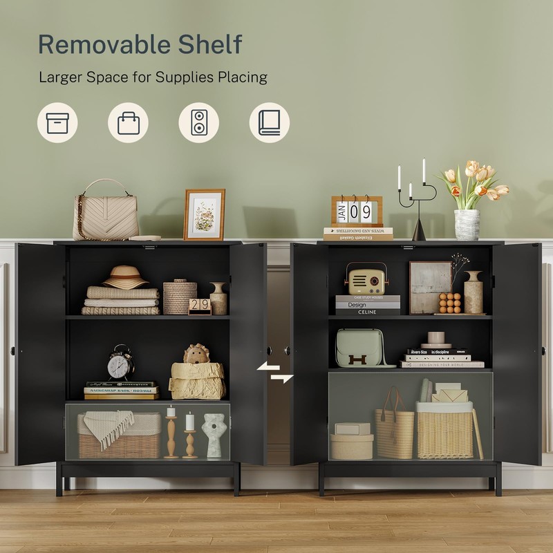- 【Adjustable Shelves】Given all the uses you might have for this cabinet, our storage cabinet came with 3 holes for the shelf-brackets at the bottom of the cabinet to adapt the shelf heights for your unique needs.