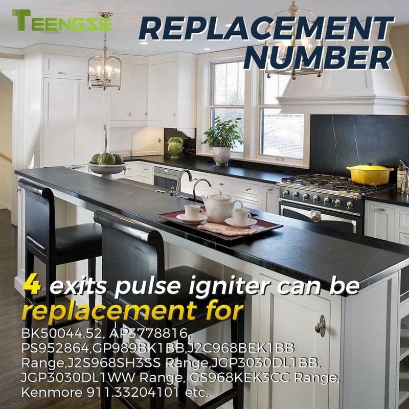 - 【REPLACEMENT NUMBER】: 4 exits pulse igniter can be replacement for BK50044.52, AP3778816, PS952864,GP989BK1BB,J2C968BEK1BB Range,J2S968SH3SS Range,JGP3030DL1BB, JGP3030DL1WW Range, GS968KEK3CC Range, Kenmore 911.33204101 etc.
