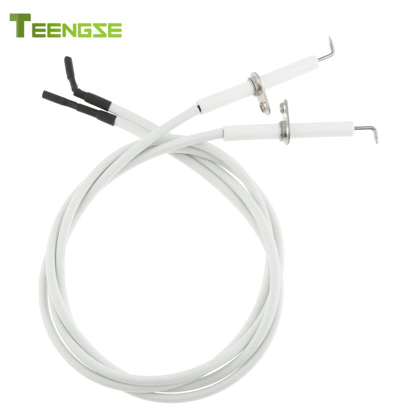 TEENGSE Igniter Ceramic Electrode, 2PCS Ceramic Igniter Electrode Replacement Parts, 27.5inch Ignition Wire & Ceramic Spark Plug Ignition Electrode for BBQ Grill Burner Heater Fireplace