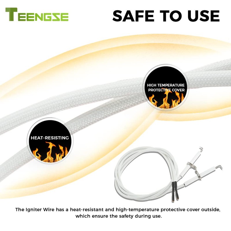 - 【700MM LONG IGNITION SPARK PLUG WIRE】: The igniter wire of ceramic igniter electrode is made of solid brass with high strength and hardness and strong chemical resistance. The material used in the outer skin is glass fiber, which has good insulation, strong heat resistance, good corrosion resistance and high mechanical strength. The 27.56inch/700mm long wire connects the grill/stove and igniter well for easy movement.