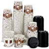 Teenyyou 100 Set 4 oz Disposable Espresso Cups Bulk with Lids Wide Handles Printed Paper Disposable Coffee Cups for Hot Chocolate, Tea, Cocoa