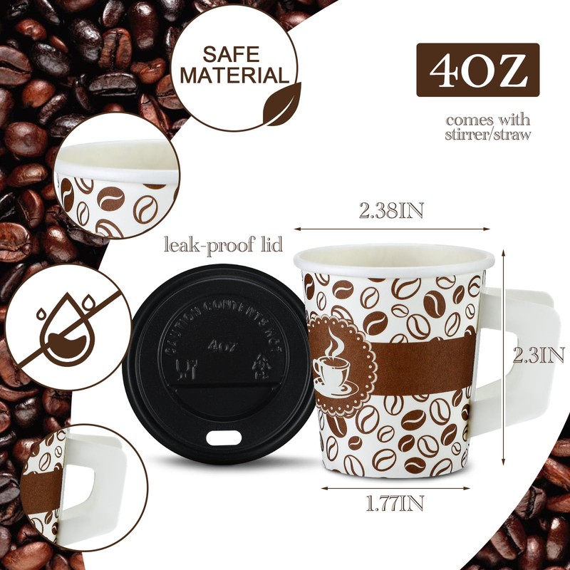- Value Pack for You: the package includes 100 sets of disposable coffee cups with handles, mainly in coffee color, classic and elegant; The enough quantity can fully cover your daily and party use demands