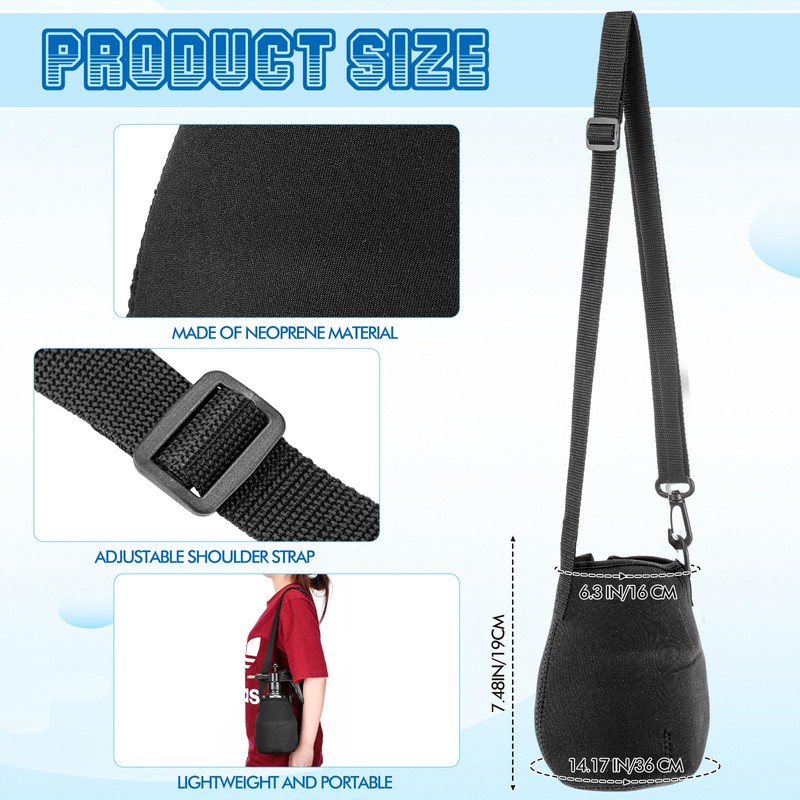 - Suitable Dimensions: with dimensions of 4.72 x 11.8 inches/ 12 x 30 cm, these portable spray with built-in carrying strap are neither too large nor small; They can hold 0.34 gallons/ 1.5 L of water, helping you water your plants efficiently without frequent refills; The sleeves, too, are designed with appropriate dimensions (14.17 inches / 36 cm bottom circumference, 7.48 inches/ 19 cm high, and a minimum caliber of 6.3 inches/16 cm) to snugly fit the bottles
