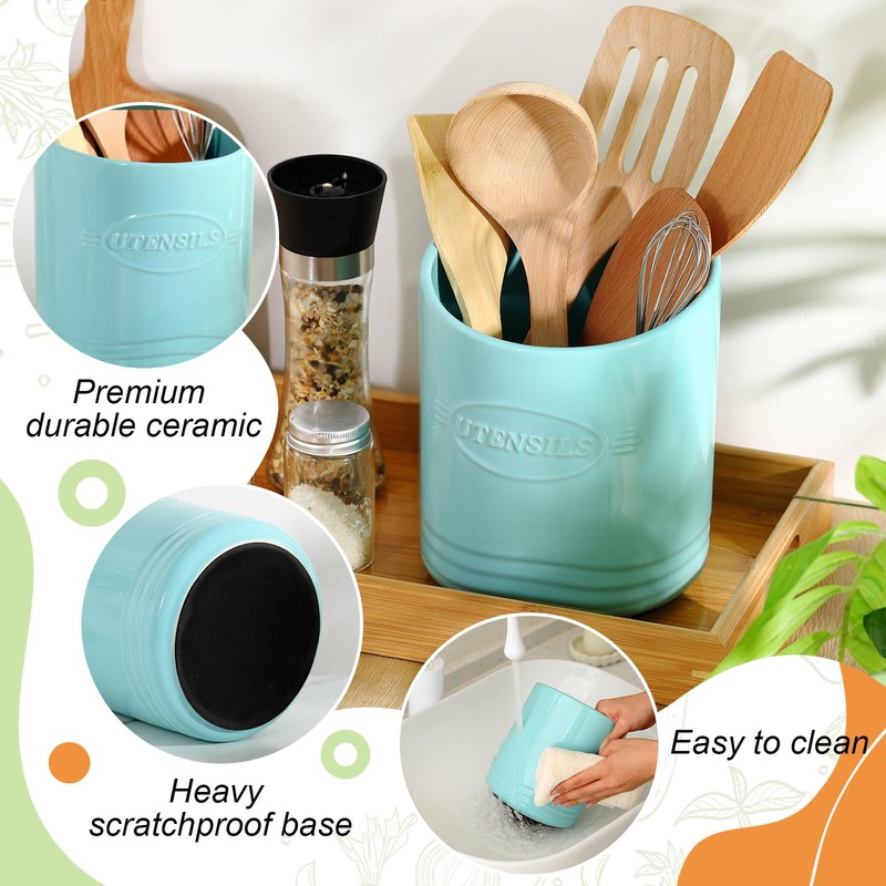 - Built to Last: made from sturdy ceramic material, this large ceramic utensil crock is designed to stand steadily while holding your utensils; Its durability ensures it remains an indispensable part of your kitchen for a long time