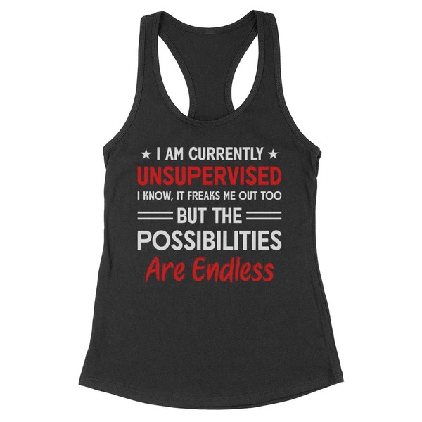 TeesAndTankYou Currently Unsupervised Tank Top Fitted Racerback Women's Small Black