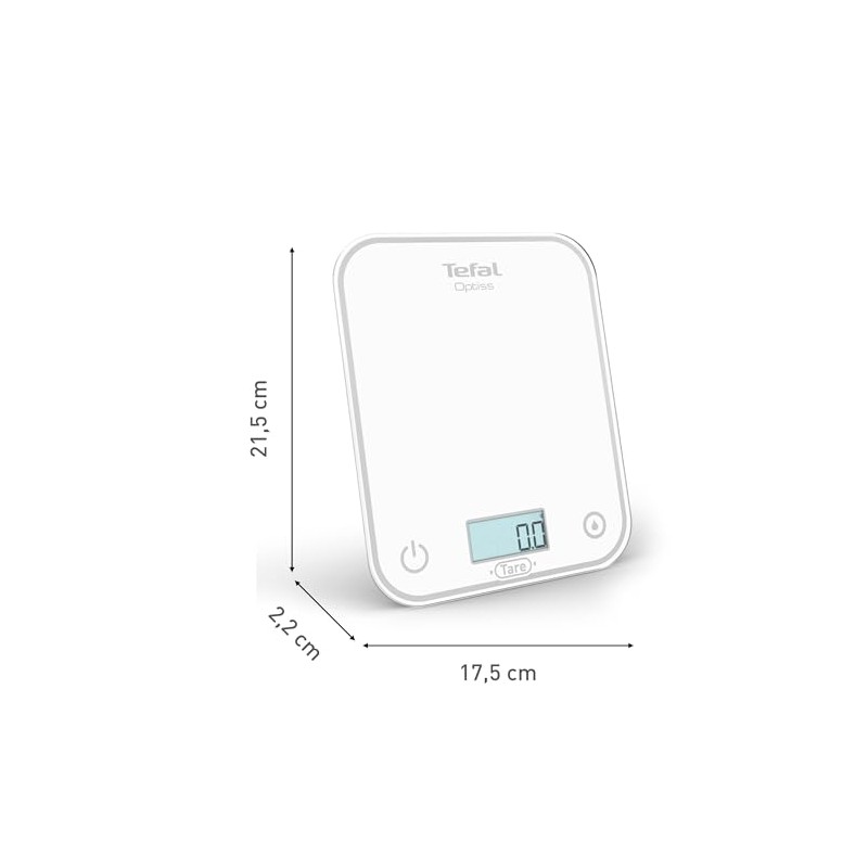 - Box contents: Optiss kitchen scale, 2 AAA batteries